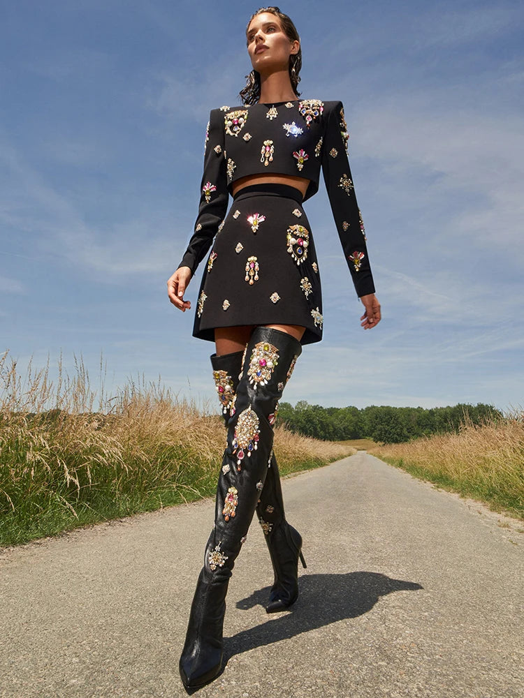 Elevate your presence with Crystal Fantasy Stiletto Boots—where luxury meets attitude. These stunning boots showcase shimmering crystal embellishments that catch the light with every step, creating...
