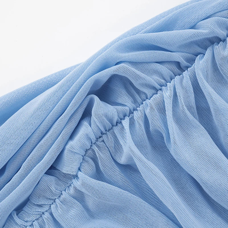 Make a statement with the Two-Piece Mesh Patchwork Pleated Mini Dress. This playful set combines trendy mesh and patchwork details with a flirty pleated skirt, creating a fun and fresh look that’s perfect for dancing through the day or night.
