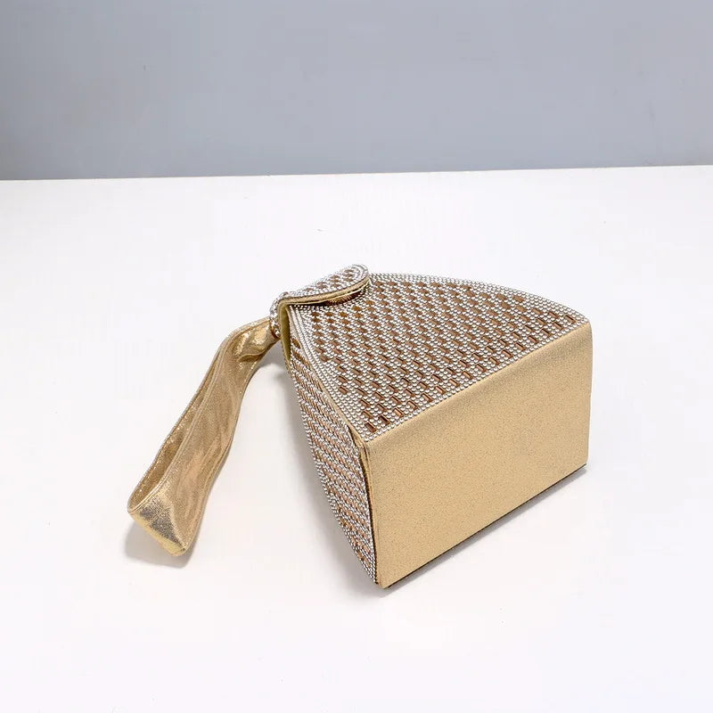 Make a bold statement with the Gilded Pyramid Clutch, where architectural design meets luxurious appeal. This striking piece features geometric pyramid detailing with a radiant gilded finish that commands attention and admiration. Perfect for those who refuse to blend in, this clutch transforms any occasion into an opportunity to showcase your distinctive taste. The structured silhouette holds your essentials while the eye-catching embellishments spark conversation. Whether paired with evening wear or elevated casual outfits, this accessory proves that confidence and style go hand in hand. Invest in a clutch that celebrates your bold personality and elevates every moment you carry it.