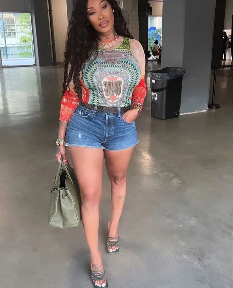 Add a bold twist to your wardrobe with this Mesh Dollar Print Classic Aesthetic O-neck Long Sleeve Skinny Top. Its sleek, form-fitting design pairs perfectly with your favorite jeans or skirts, while the playful dollar print adds a fun, edgy vibe. Lightweight mesh fabric keeps you cool and comfortable, making it ideal for day-to-night looks that stand out.