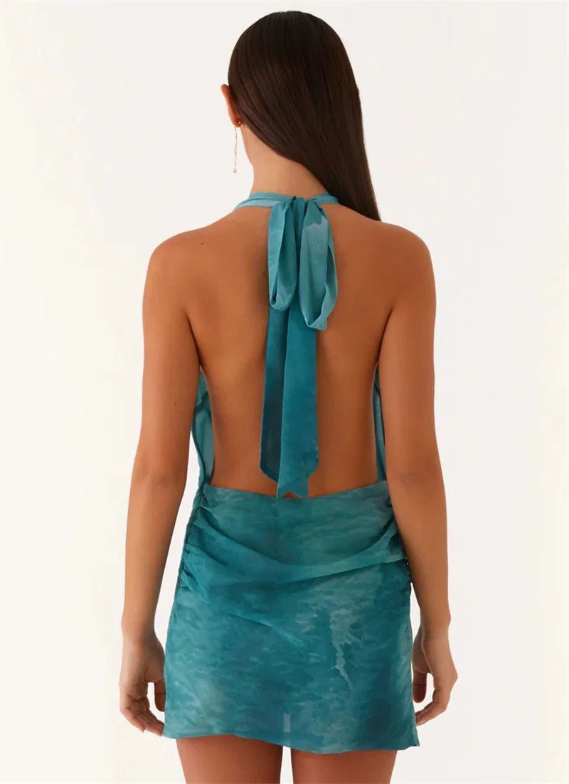 Turn heads with this Halter Deep V Neck Sexy Mini Dress. Its plunging neckline and flattering halter style highlight your curves while the mini length adds a playful touch. Perfect for nights out or special occasions when you want to feel confident and bold.