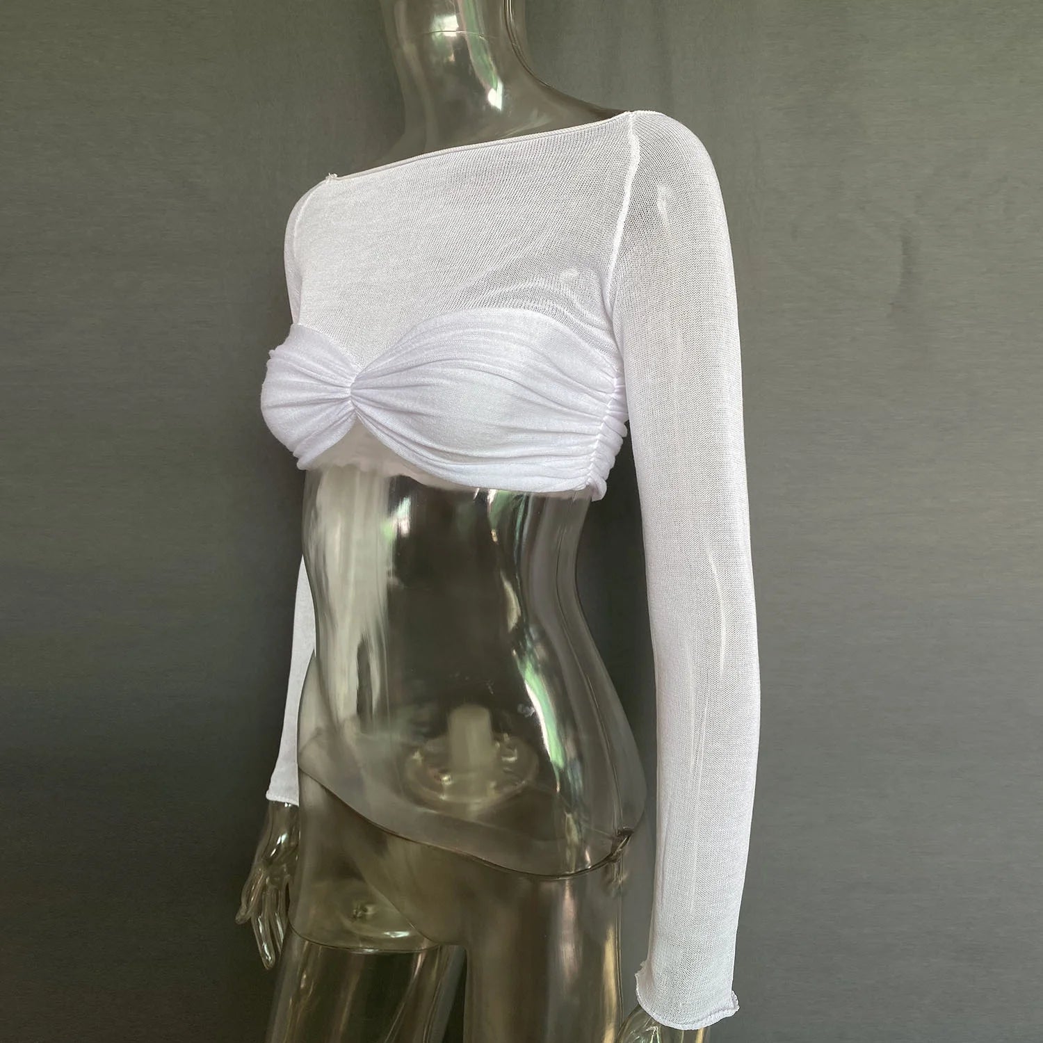 Turn heads with this See Through Mesh Crop Top, designed to add a flirty edge to any outfit. Its lightweight, breathable mesh fabric keeps you cool while showing just enough skin for a playful vibe. Perfect for layering or wearing solo, this crop top brings fun and confidence to your wardrobe.