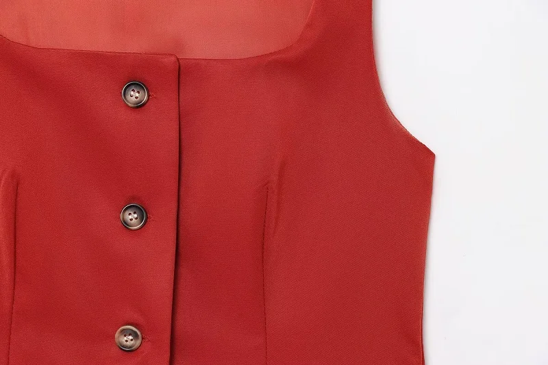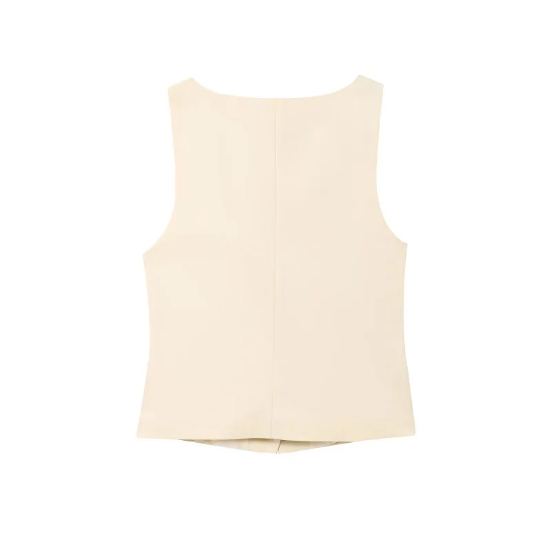 Turn heads with this Sleeveless Button-Up Waistcoat Tank Top that blends classic tailoring and effortless cool. Featuring a crisp button-up front and a flattering waistcoat cut, it’s your go-to for layering or rocking solo. Lightweight and breezy, it adds a dash of playful charm to any outfit—whether paired with jeans or dressed up for a night out. Perfect for those who love a twist on tradition!
