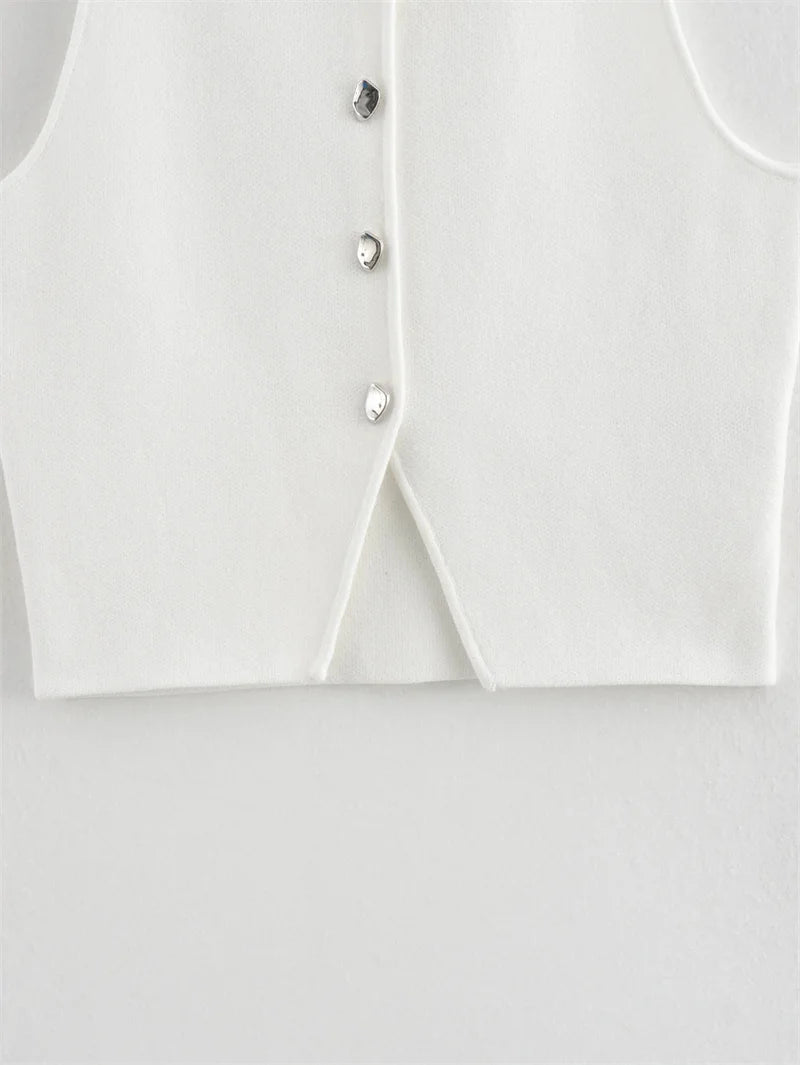 Elevate your casual look with this Cropped Sleeveless Knit Vest, designed to add a fun twist to your outfit. Its cozy knit fabric offers comfort, while the cropped cut keeps things flirty and fresh. Perfect for layering or wearing solo on warmer days, this vest adds a playful edge to your wardrobe essentials.