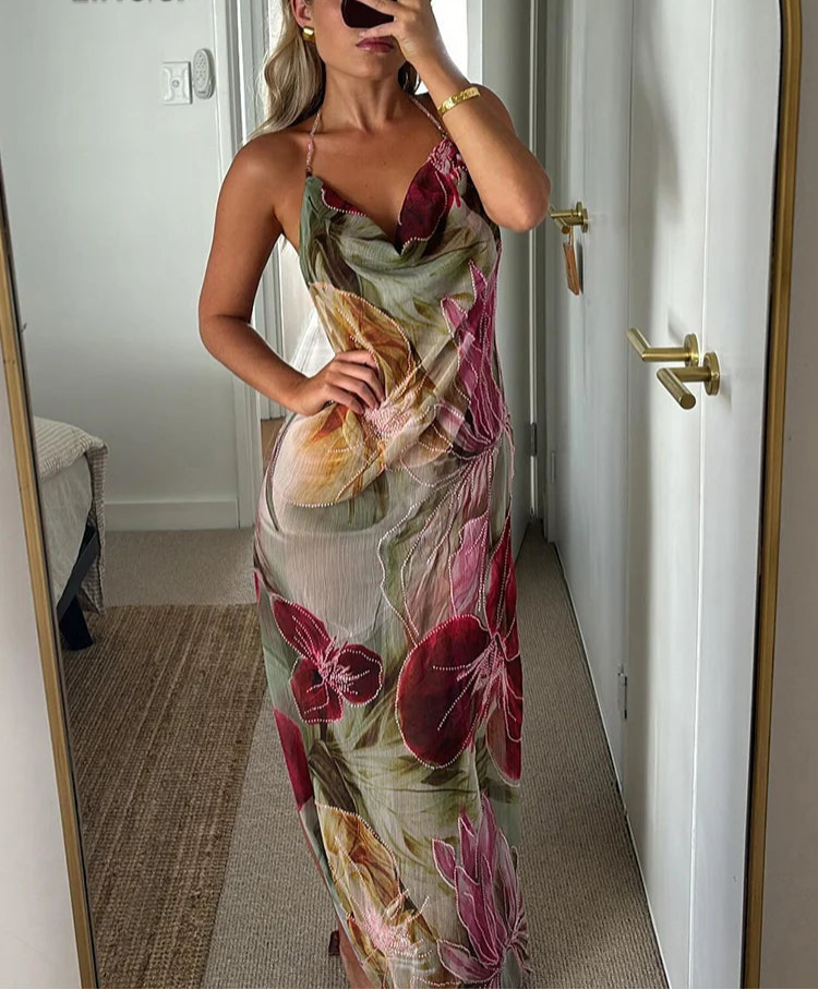 Step into playful elegance with the Split Thigh Backless Mesh Flower Design Maxi Dress. Its flirty thigh-high split and delicate flower mesh details create a fun, breezy vibe, while the backless cut adds a touch of daring charm. Perfect for making a stunning statement wherever you go!