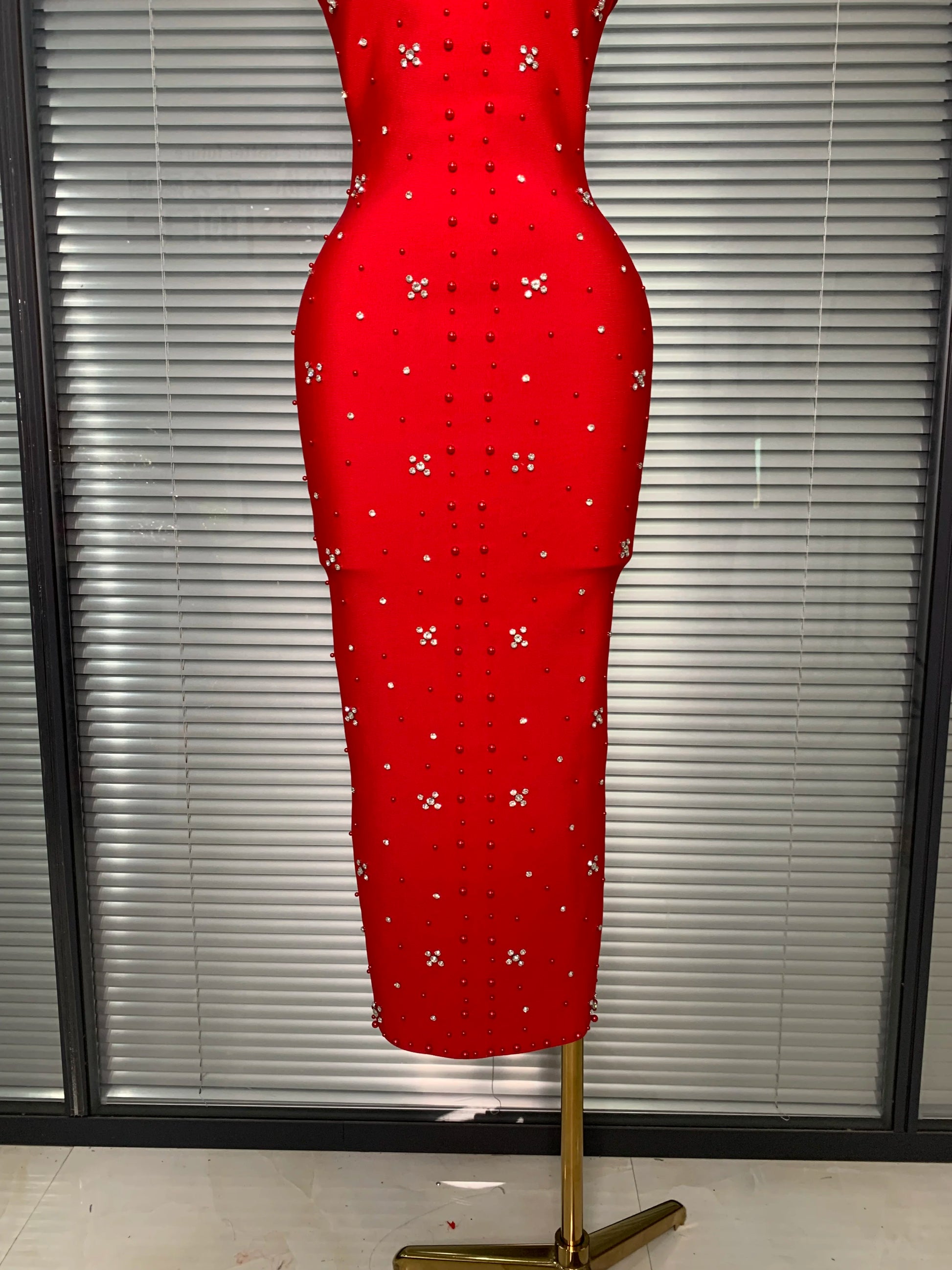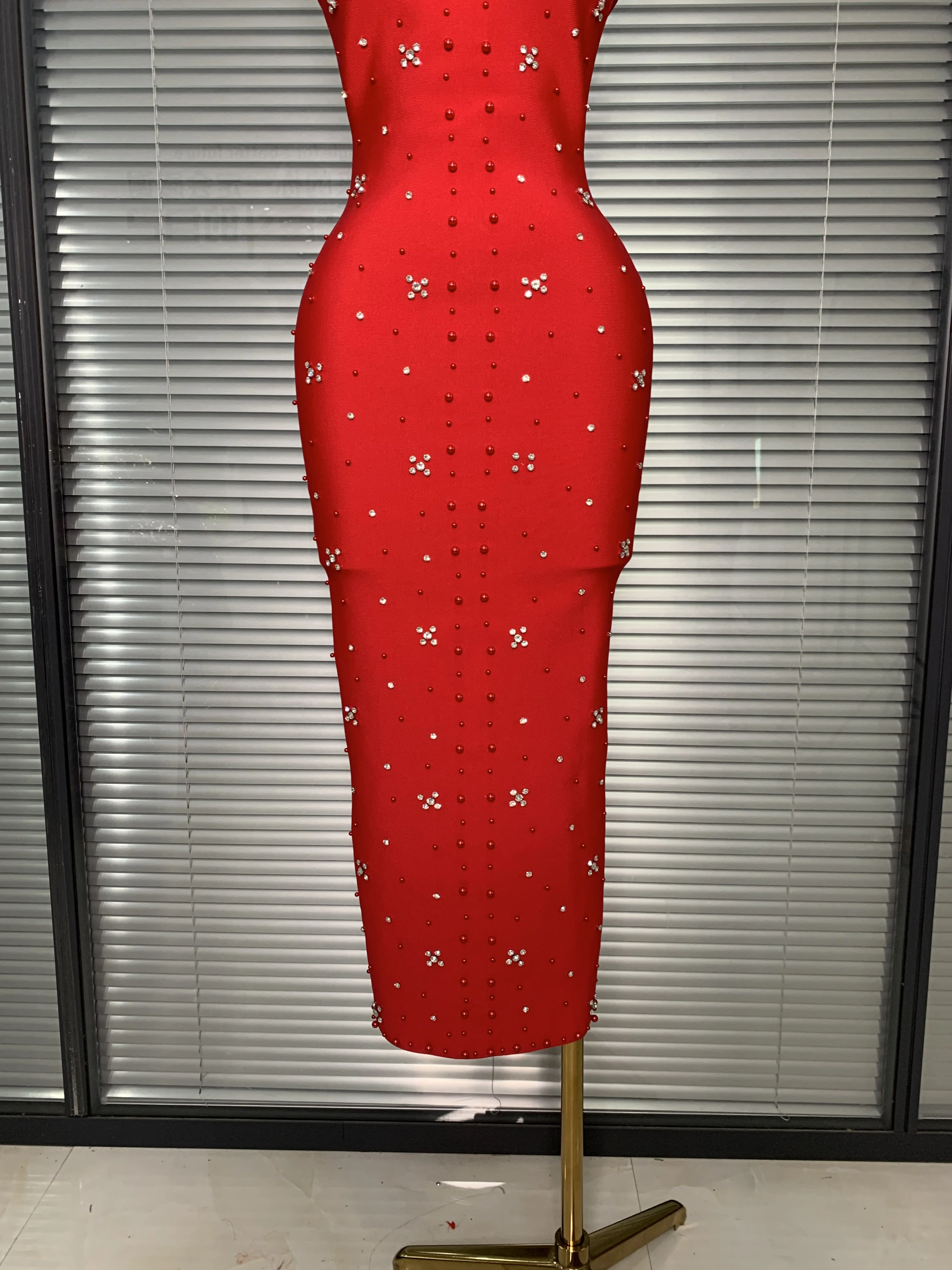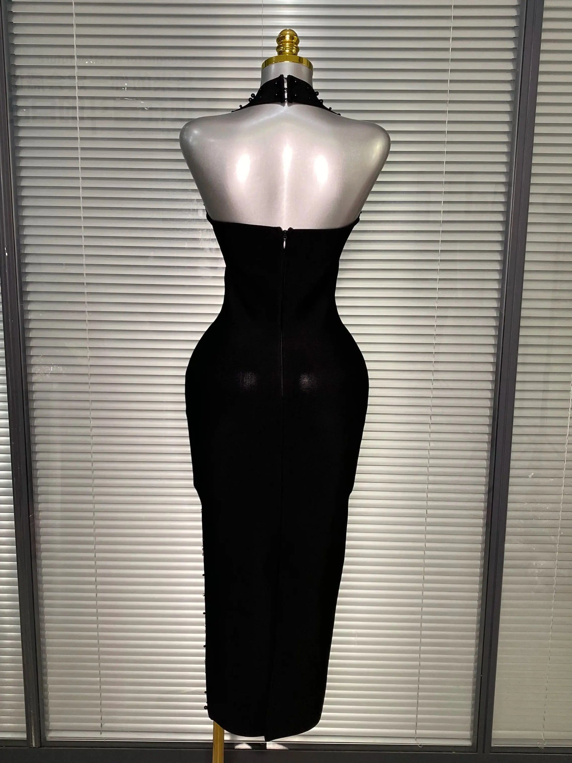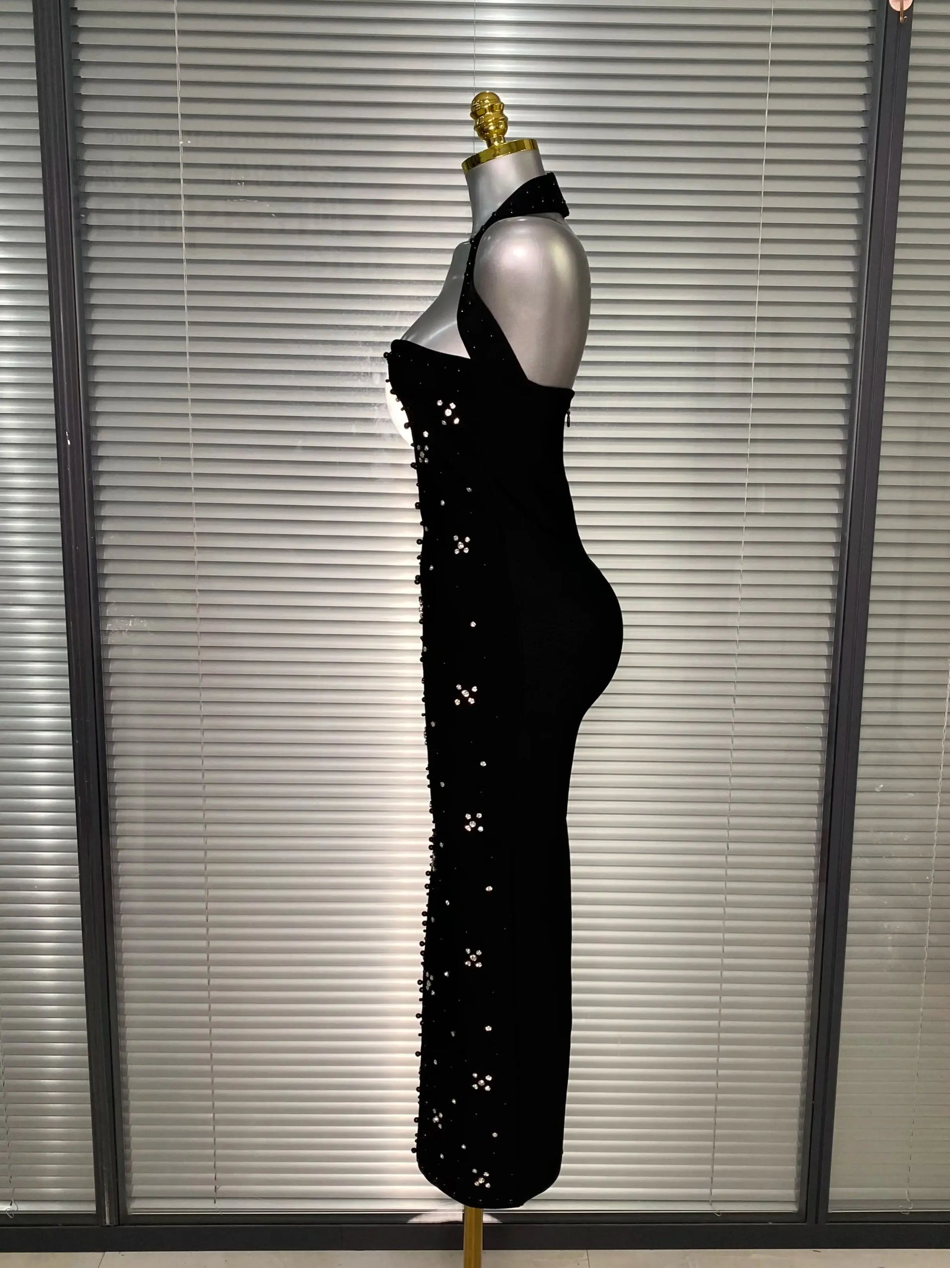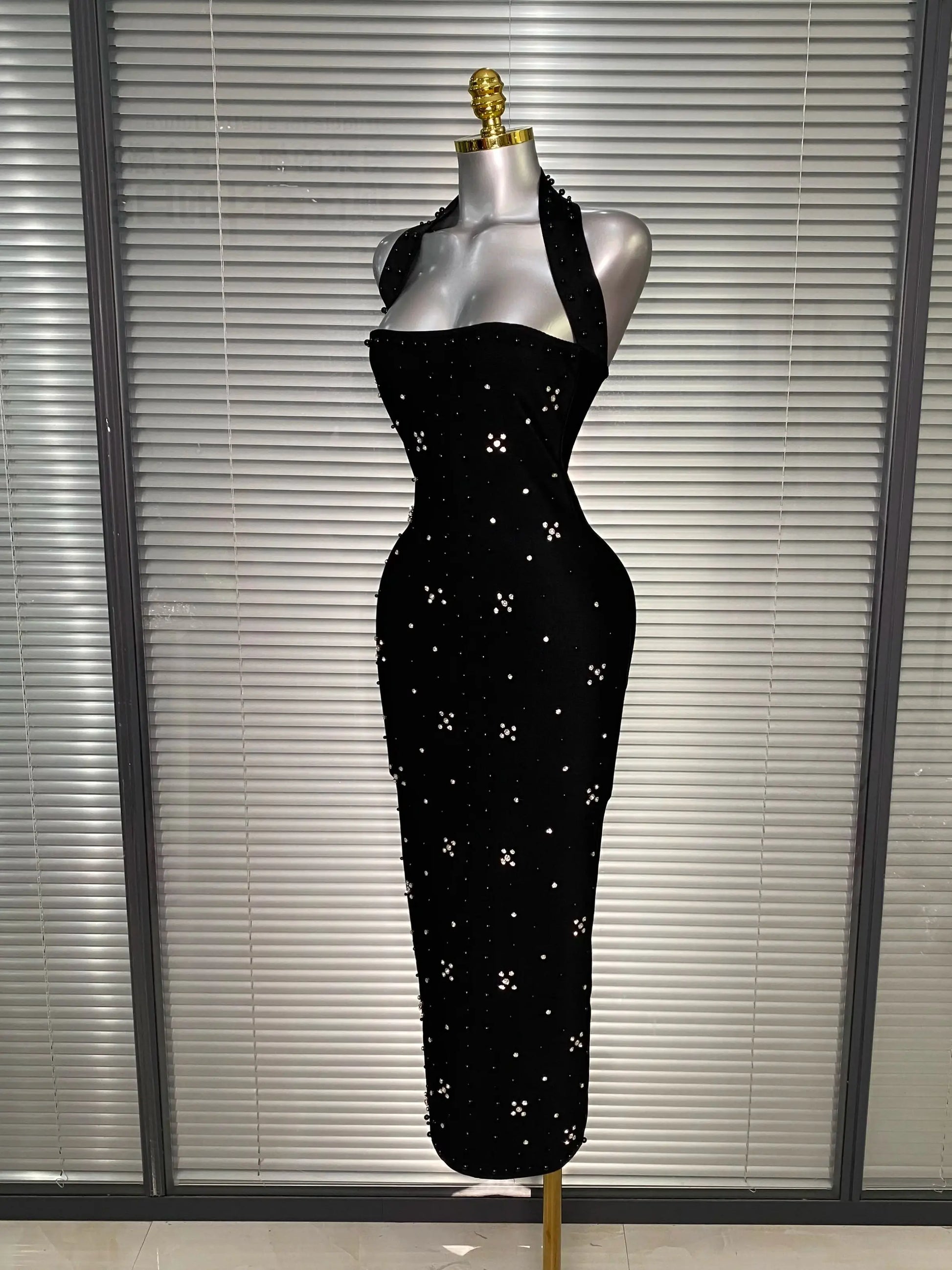 Halter Long Crystal Beaded Bandage Dress