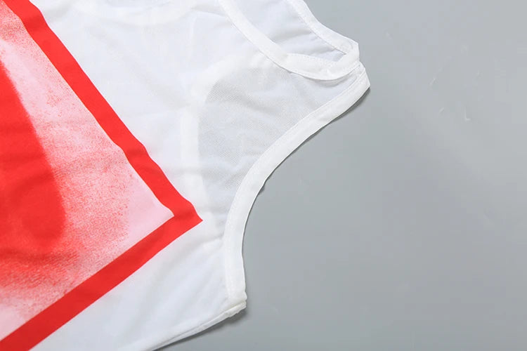 Mesh Lip Print Y2K O-neck Sleeveless Mini Dress
